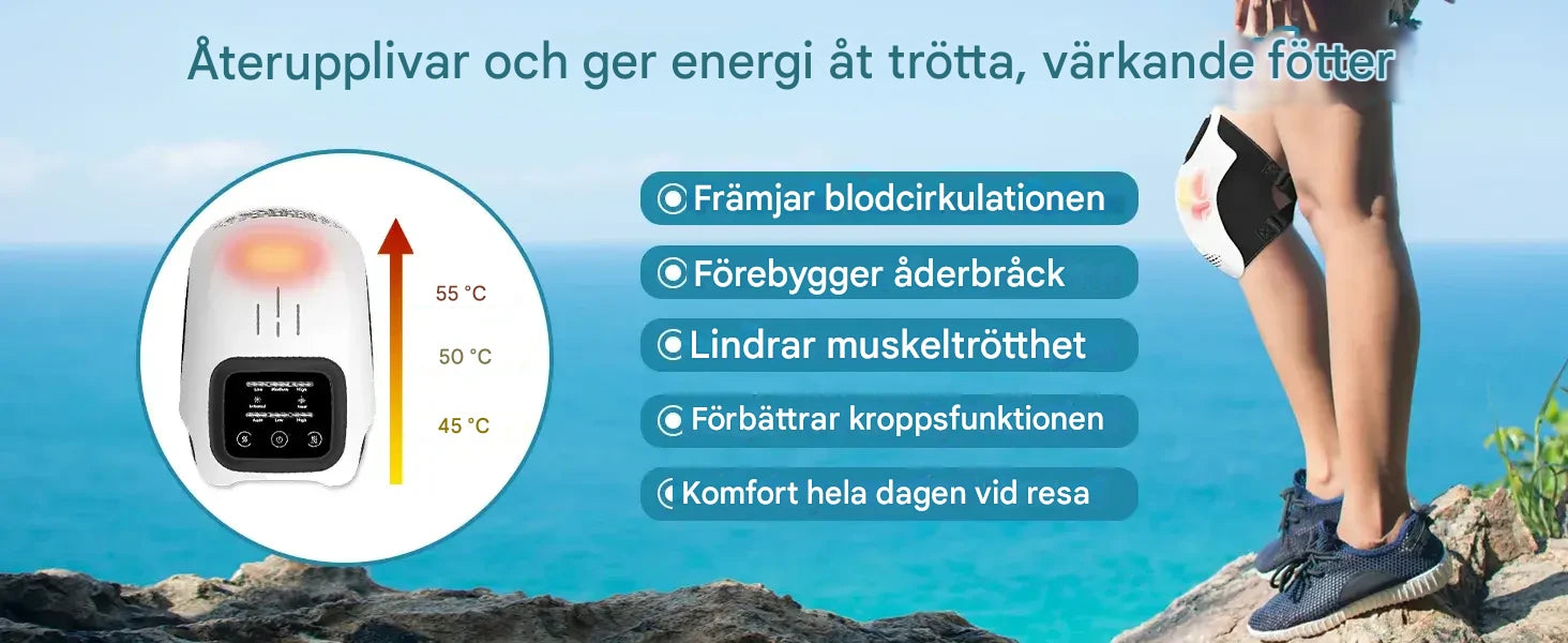 Denna knämassageenhet hjälper till att minska knäsmärta och stelhet samtidigt som den främjar bättre cirkulation. Den är särskilt användbar för återhämtning efter träning, långvarigt sittande eller dagar med fysisk aktivitet. En enkel och pålitlig lösning som gör det möjligt att få avkoppling och komfort när du behöver det som mest.